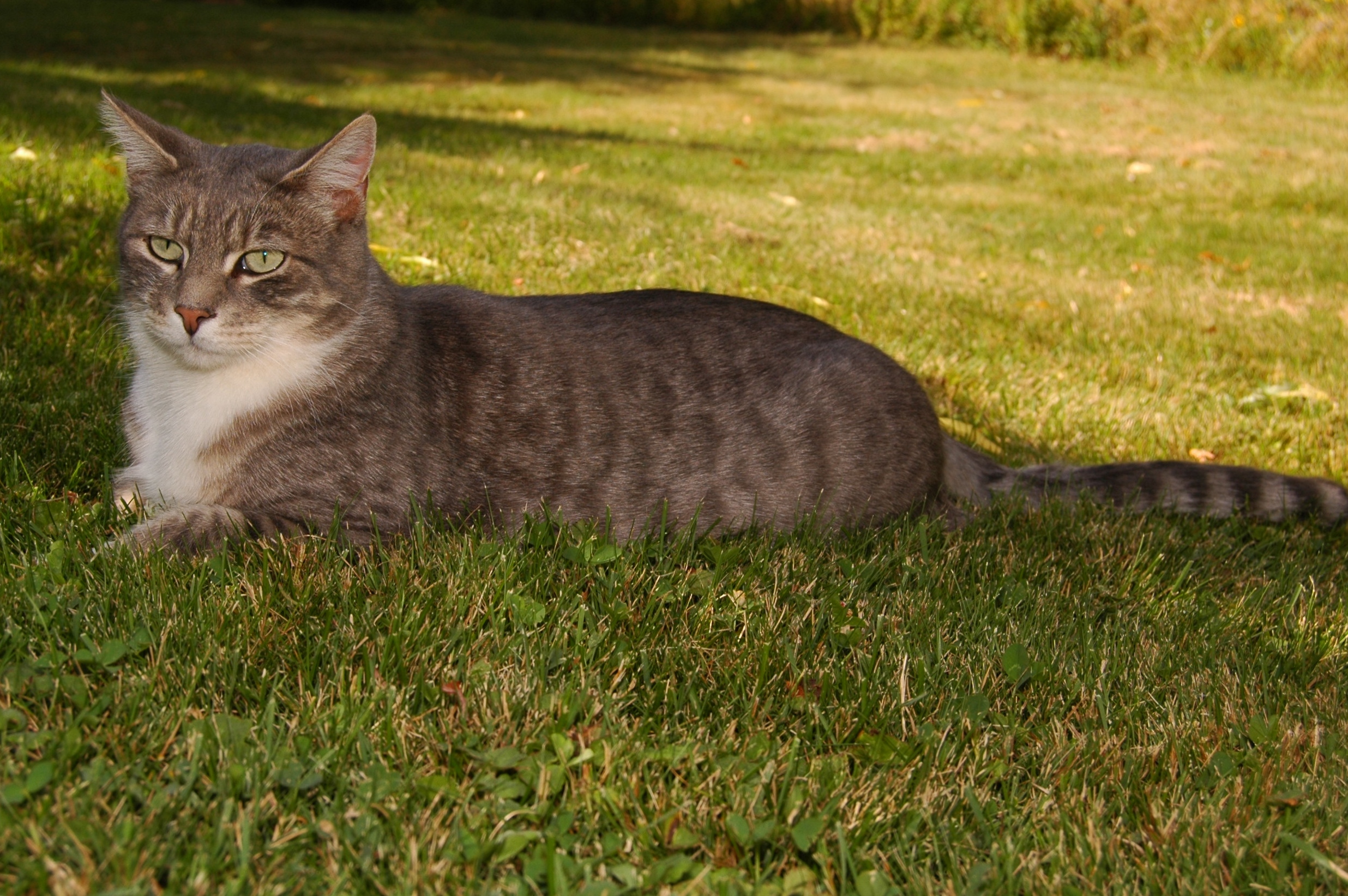 The stripes upon their Bengal legs, buttered evenly by the heat, Melted in the shade of cut leaf maple, so cool beneath their feet.
